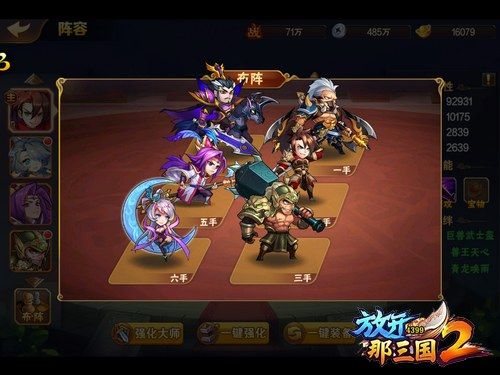 放开那三国2应用宝版是一款腾讯应用宝代理运营的一款三国题材卡牌策略手游,作为《放开那三国》的正统续作,它在继承前作经典元素的基础上,带来了更丰富的游戏体验和社交功能,角色包括怪蜀黍、小正太、软妹子等多种类型,玩家可收集三国时期的名将,通过培养、进化、搭配战魂和天命等系统,组建自己的强力阵容。