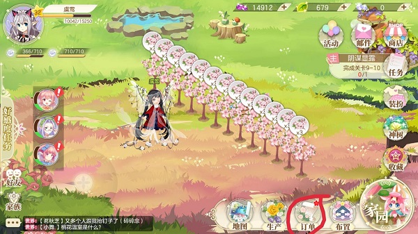 最原始的途径是种花,然而这种途径实在是收益甚微,所以卡级或者想要快速升级的小伙伴可以去做订单,订单位置如下图。