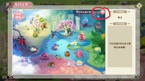 就是这个粉色的小加号,它可以增加我们的每日订单上限,从而带来更多收益,但是同样,它也需要神叶来刷新,每日最高次数是30次。