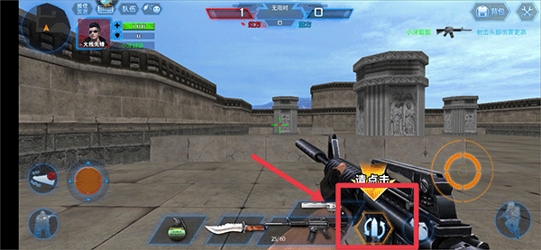 2、在游戏中当敌人出现时,按住左边按钮来移动角色,右边射击按钮来滑动视角,将枪准心瞄准敌人后会自动射击并将敌人击杀