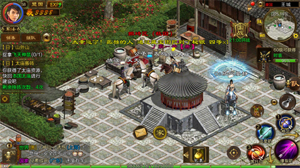 火力太猛扛不住了怎么办?那就避其锋芒吧!你一定会发现太庙的东北方有一个传送点,没错,那就是传说中的小木屋,你点进去就会传送到小木屋,就会进入安全地带,等待换砖冷却时间,这种办法是最安全而且减少原地银两的方法!