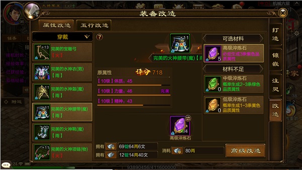 2、装备等级越高,属性改造消耗的淬炼石越多。