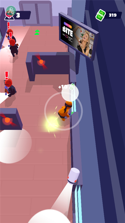 3、正式进入游戏后,玩家需要躲避多人敌人的监控,潜伏到他们身边并击杀;