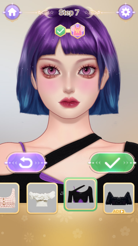 3.超多造型选择:游戏精心准备了多重妆容和服饰搭配,设计了萌妹、御姐、甜酷女孩等多种专属造型,尽情发挥你的创意想象。