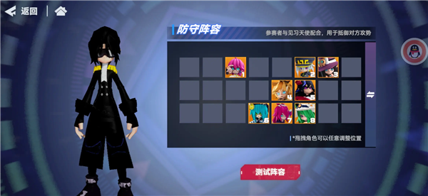 每个关卡开始前,天使们可以选择出战的参赛者并进行编队,选择的序号会决定每个己方回合参赛者的行动顺序和初始站位。