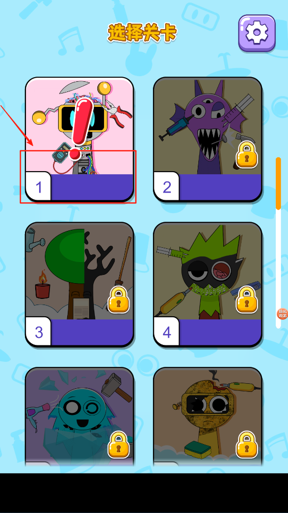 1、在关卡选择界面,点击任意一个关卡图标,比如“1”,开始你的游戏挑战。