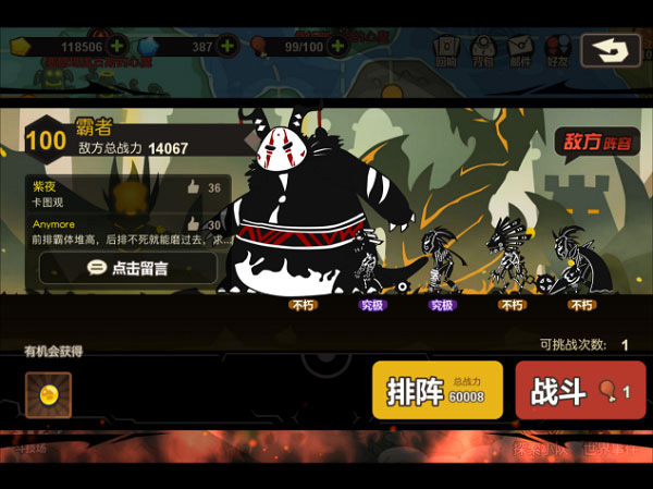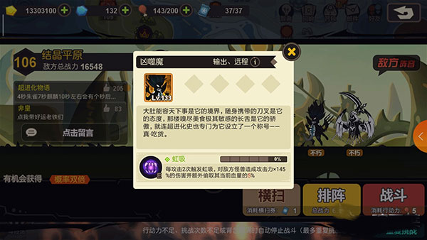 挑战这些强力的怪兽只需要消耗1点体力,获得的经验大概为普通关卡的2倍,但是对手往往很强力,对自己实力有自信的玩家可以前去挑战。