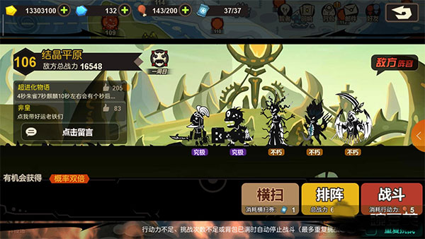 3、超进化物语闯关、炼狱、无限等多个模式供你选择,不断终极进化,完成更多华丽冒险;