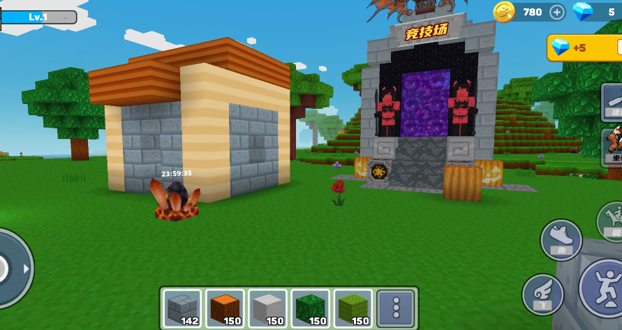 1、通过虚拟摇杆自由移动角色,收集各类建材和资源,打造属于自己的独特建筑。