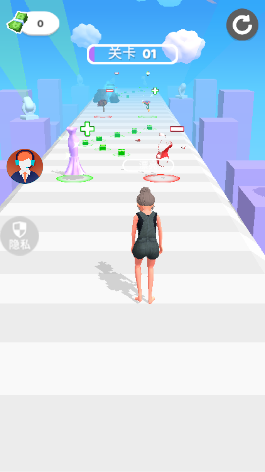 3、装扮收集系统:解锁上百套情侣服饰组合,每套专属装扮都附带独特的跑酷特效与加分效果。