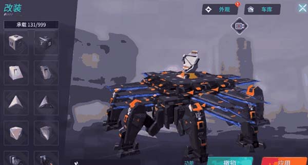 基于真实物理引引擎设定,装上车轮,机械腿,机械就有了运动能力;加上火炮,便可以开火作战;再加上几个喷射发动机,升空飞行也不在话下。