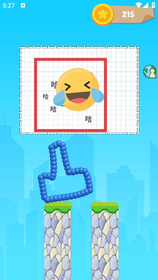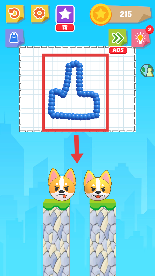 2、绘画完图案后,松开手指即可让绘画的图案向下坠落砸向小狗。