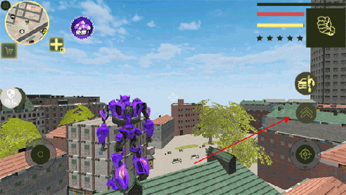 2、在游戏里面你们可以直接去长按这个按钮,然后你们就可以实现很多的玩法,比如说可以是实行高度跳跃,能够跳上屋顶,轻松实现飞檐走壁,所以整体操作起来也是很容易的。
