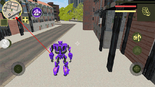 3、进入游戏里面之后你们去点击右侧的按钮,你们的游戏当中的人物就会直接变身成为一辆汽车开始跑酷追击敌人,再点击一下就可以变身机器人展开战斗,所以玩起来也是很激烈的。
