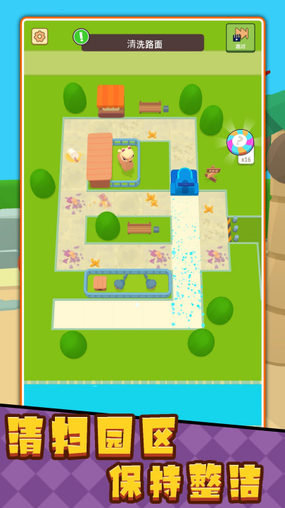 1、园区主题定制:可自由定制园区主题风格,随意点击尝试精彩趣味的装修改造,同时完成任务获取奖励,操作轻松无压力。
