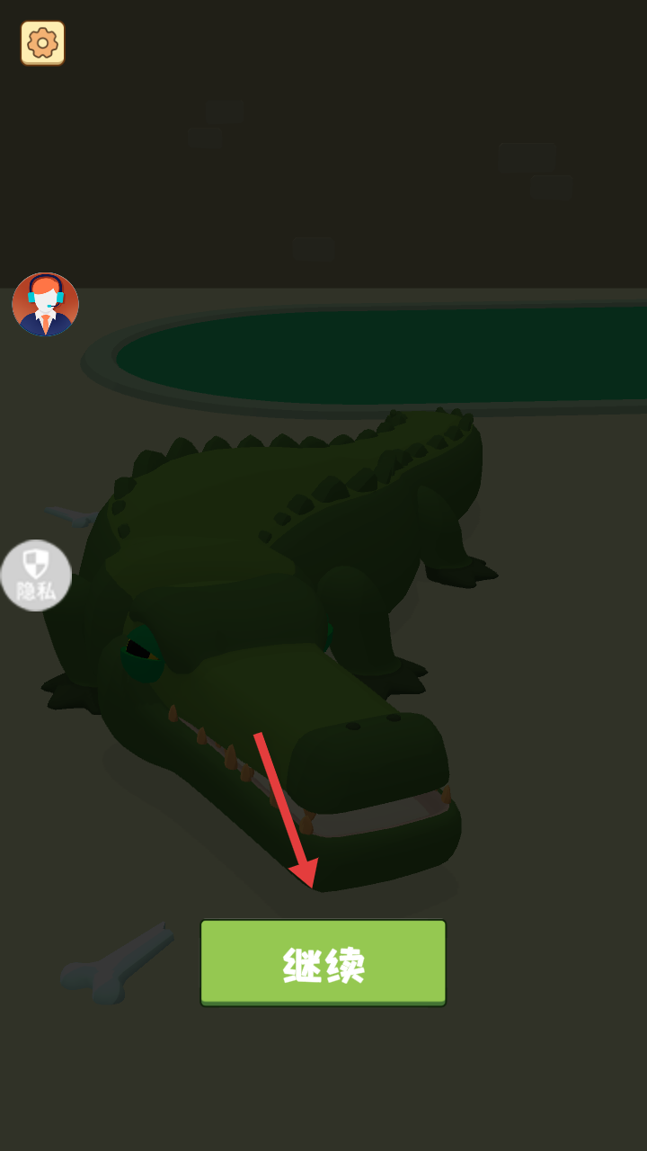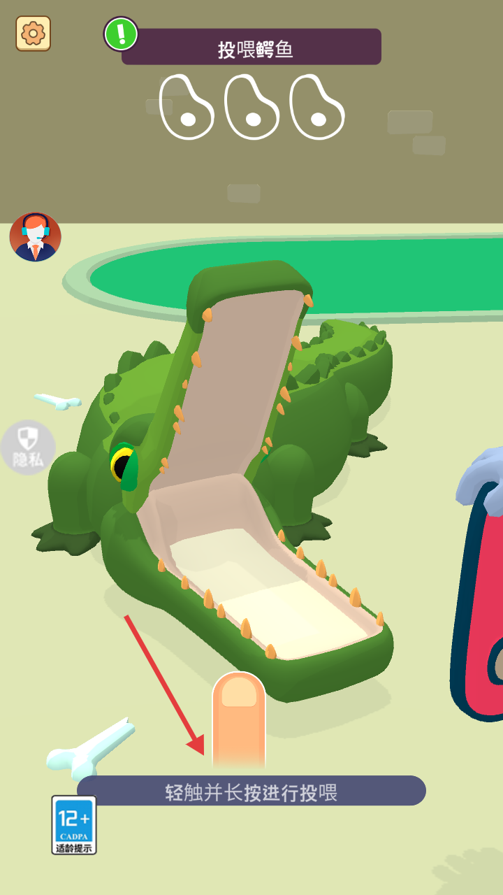 1、根据提示【轻触并长按进行投喂】,对鳄鱼进行投喂操作。