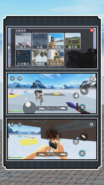 1、超级刺激的射击游戏,选择你想要的武器,开始战斗。