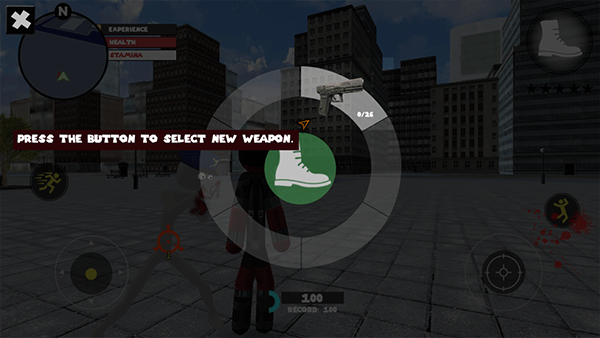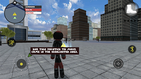 1、进入游戏玩家将控制一名火柴人开始冒险,滑动左边轮盘可以控制角色移动,点击右边按钮可以进行攻击。