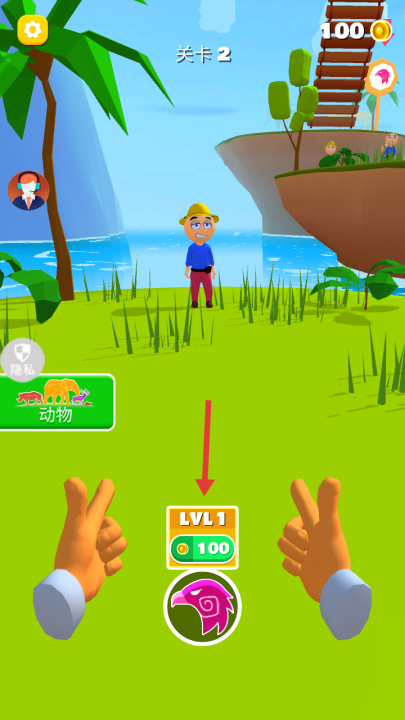 4、进入关卡2,使用金币(如底部显示的LVL1,100金币)进行升级,提升角色能力,继续挑战后续关卡。