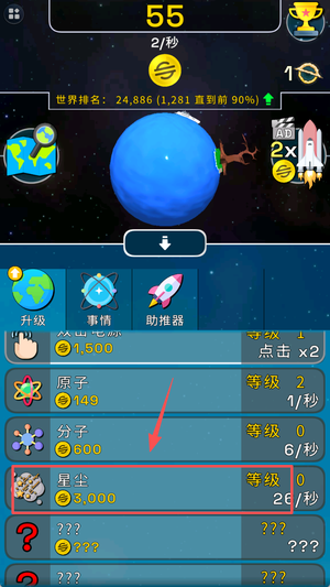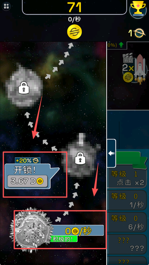 1、开始游戏后选择初始行星形态,通过操控小行星撞击目标星球实现体积扩张奠定基础。