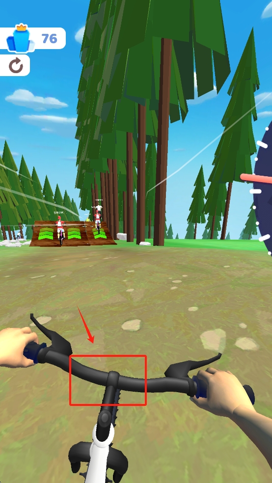 2、在赛道上,通过左右倾斜屏幕或点击方向按钮,控制自行车的方向,躲避障碍。