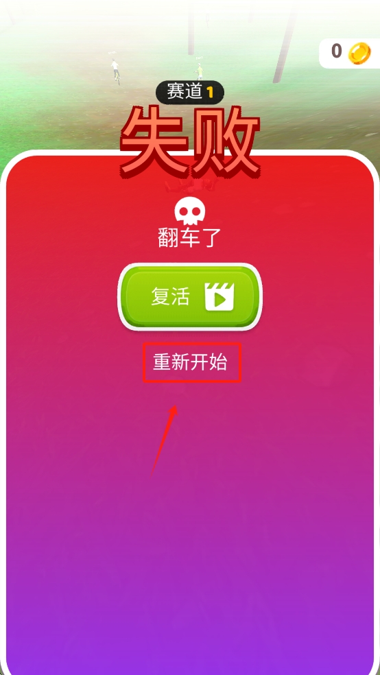 3、如果不小心翻车,点击“重新开始”按钮,重新挑战当前赛道。