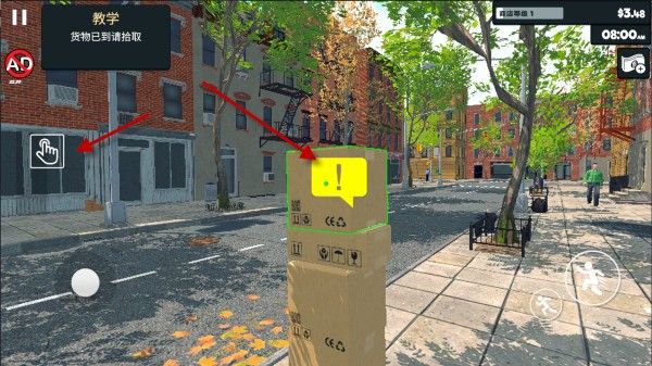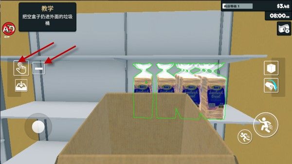 2、货物下单之后就会立马送达到超市门口,我们对准货物,然后点击左侧的按钮拾取。