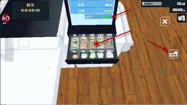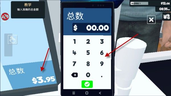 7、然后就会有顾客进来消费,你需要立马到收银台就绪。在扫描了顾客的商品后,收银机会计算出价格。