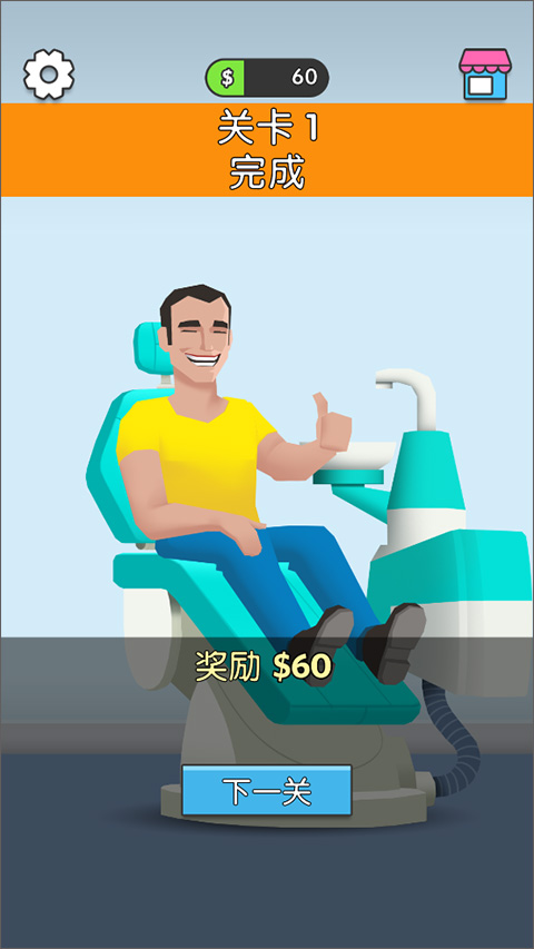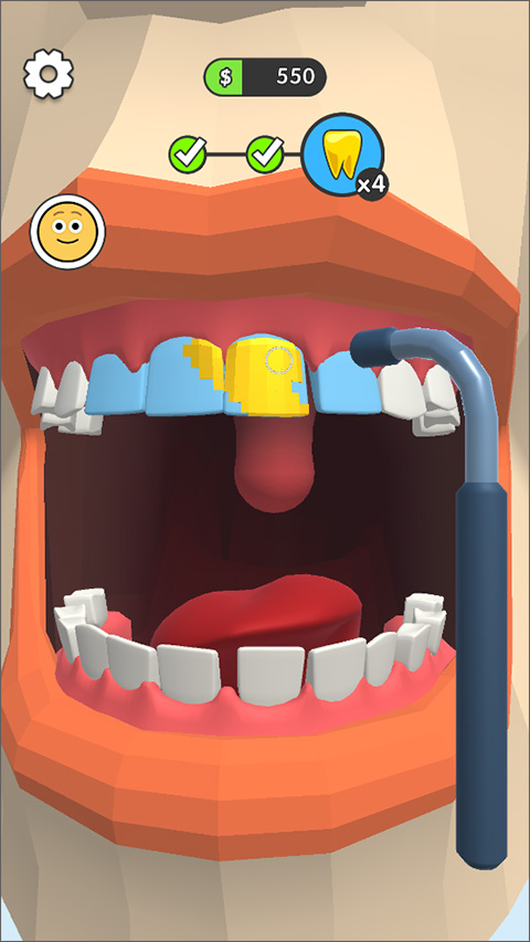 8、游戏玩法超级简单,玩家只需要根据患者要求清理牙齿,通过一定关卡后还能升级牙医实。