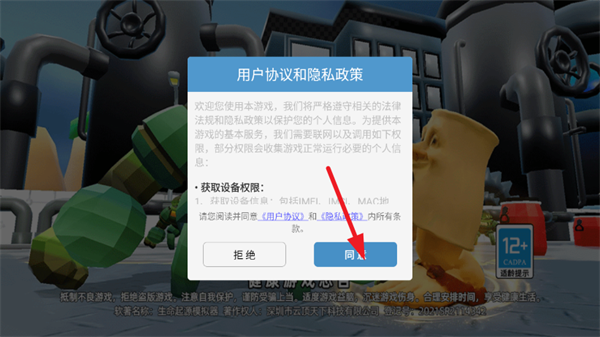 1、首先打开游戏,阅读并同意《用户协议》和《隐私政策》;