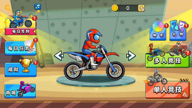 1、允许玩家通过游戏进程解锁各种款式的小摩托,并对其进行升级强化,甚至可以自由搭配炫酷的外观装饰。