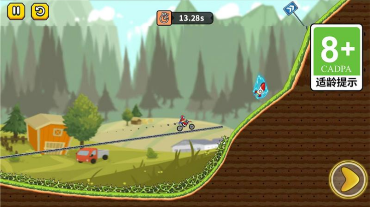 2、玩家驾驶心爱的小摩托,穿越重重难关,征服各种复杂地形;