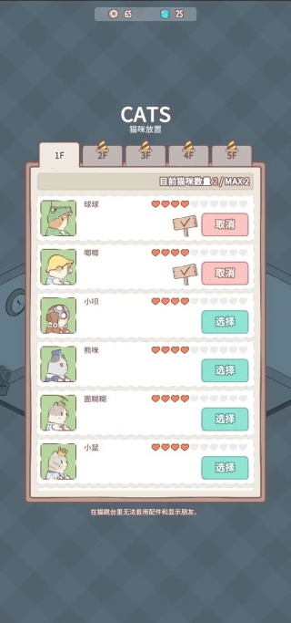1、首先玩家们要在地图上面找到猫猫,然后才能进入猫猫的房间,在这里,玩家可以进行布置,喂食、换装等操作。