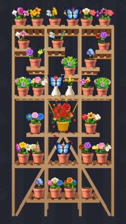繁花绽放,智慧插花!揭开花束消除的神秘面纱,跟着音符的引导,让花束跃然音符间。集结同色花朵,让它们在花瓶中自由舞蹈,感受解谜与创意的魅力。在这个充满挑战和机遇的花的世界里,让我们一起寻找消除的乐趣!