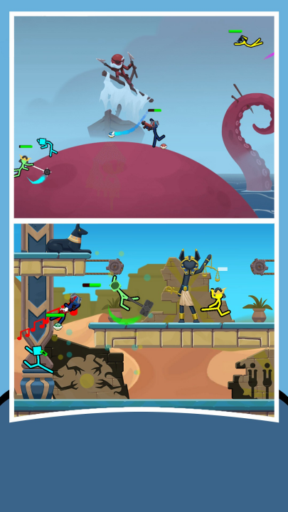 忍者双人大战游戏是一款全新的动作决斗火柴人手游,该游戏玩法超级简单,只需要操作简笔画与玩家对战,完全不需要任何复杂的操作就可以进行格斗,再加上简约的画面也不会让你产生视觉疲劳,整个游戏的过程中完全是可以通过格斗的方式来释放自己心中的压力。同时还可以支持2-4个玩家,玩家可以操控任意单位,通过物理效果进行攻击和防御等一系列操作,还有轻松的音乐融合在其中,让你根本停不下来。