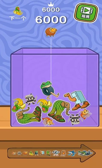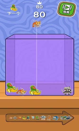 2、可以手动控制下落的位置,瞄准箱子里面的怪物放入一个相同的怪物开始合成