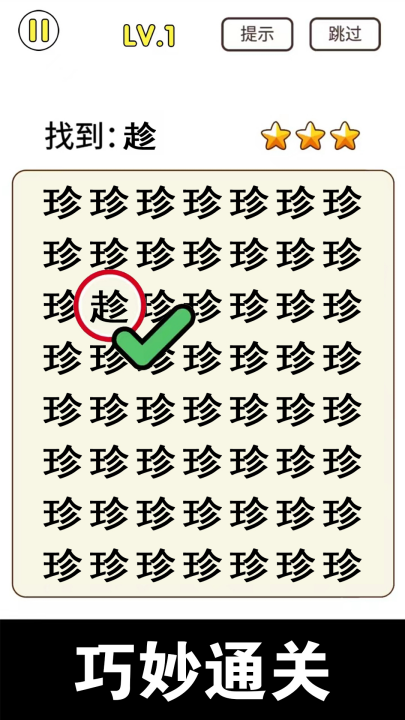 猜字暴富测试眼力v1.0.3 最新版猜字暴富测试眼力是一款很考验玩家眼力的简单休闲猜字游戏,其实就是找不同,文字中有很多长相接近的字,现在这款游戏就是将这些长相接近的字放在一起,利用人脑会脑补的特点,需要玩家自行快速的排除干扰项,并找到不一样的字,超级考验眼力。