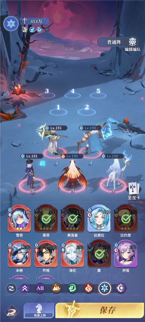 理由:弗洛基+雪菲组成羁绊,成为队伍输出核心;莱昂+露提供吸收盾;露+伊丽莎白提供回复与解控。整个阵容容易成型,心愿填雪菲/莱昂+伊丽莎白(优先雪菲),前期可用比约恩(替代莱昂)、茜希雅(替代雪菲)过渡。
