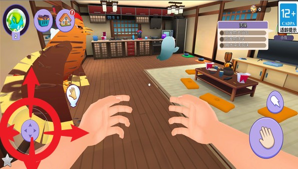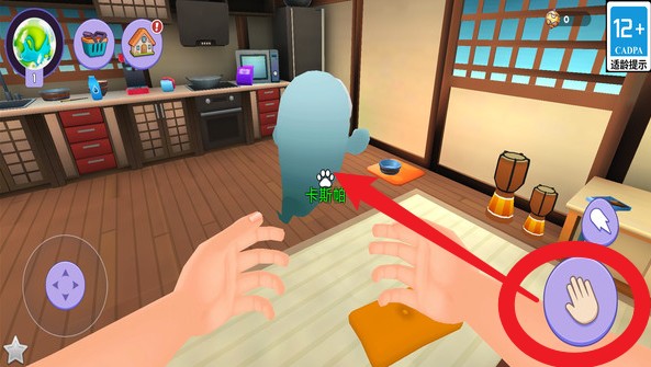 3.使用右侧手掌按钮可触发抚摸动作,提升球球的亲密度与好感值。