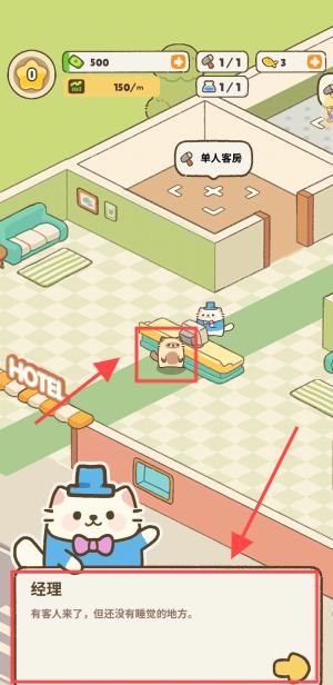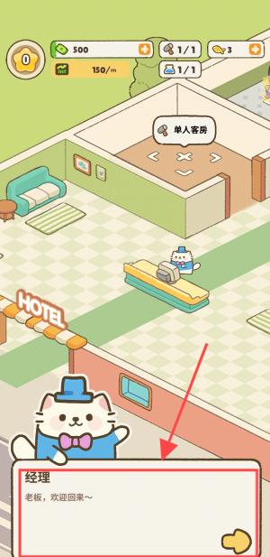 1、打开猫咪梦幻客栈后,猫猫经理会告诉你该怎么做。