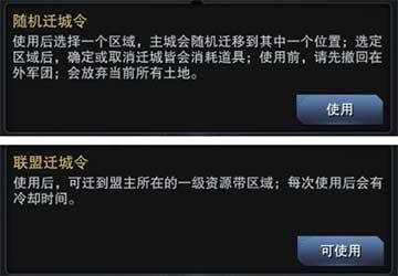 迁城就更有考究了迁城的代价还是比较大的,玩家需要花费随机迁城令或者高级迁城令才能够对城池进行迁城。