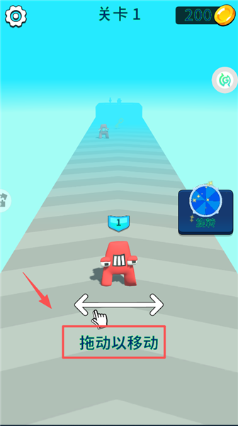1、在游戏开始界面,通过拖动红色小车来控制其在道路上移动,避开障碍物并收集金币。