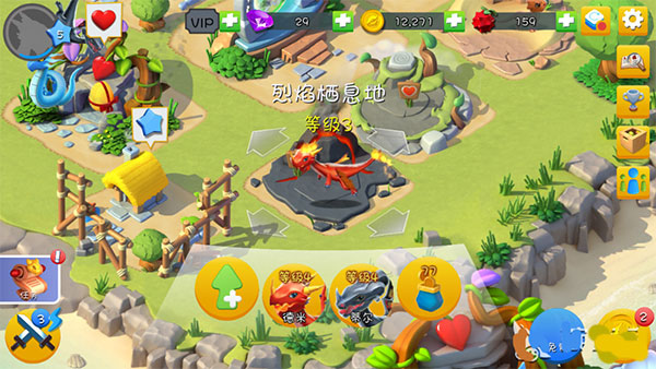 4、【传奇降临】你的龙之岛修建各种栖息地,让强壮的成年龙杂交繁育出新的龙种,在趣味小游戏中喂养、抚摸并训练你的幼龙,完成各类龙收藏