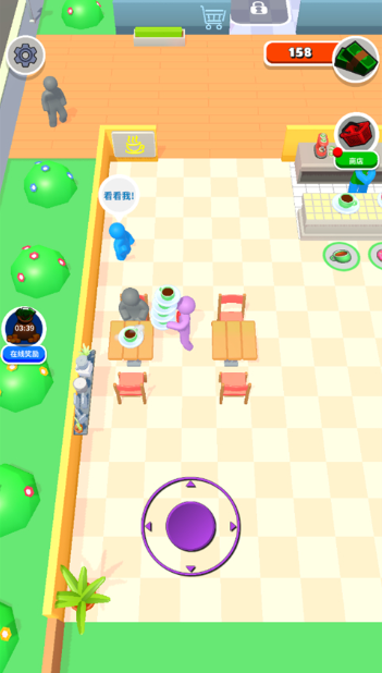 6、然后再根据指引,走到升级地标那里,用钞票解锁新的员工;
