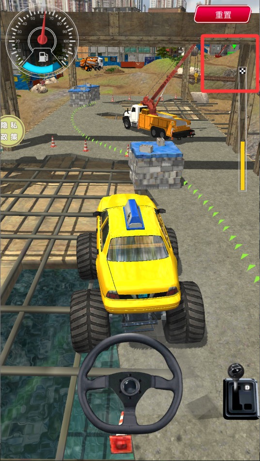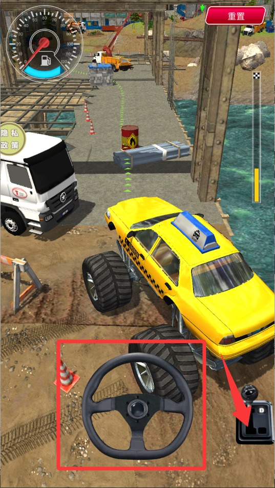 3、左手控制方向盘图标调整行驶方向,右手操作档位切换速度,注意观察后视镜避免发生碰撞事故。