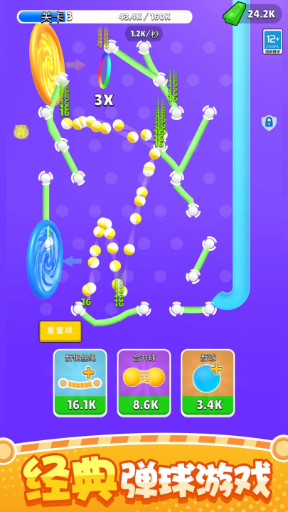 弹球高高手小游戏是一个款有趣解压的休闲益智游戏,玩家在游戏中会获得一跟无限循环发射弹球的管道,玩家通过在关卡中使用绳索、风扇、大炮等道具来改变弹球的运动轨迹,弹球每发生一次反弹,可以获得一定数量的货币。通过使用货币可以用于购买更多的道具、增加球的数量、增加球的得分等。当玩家构建出合理的摆放方式时,玩家将很快收集到关卡通过的目标分数获得胜利!