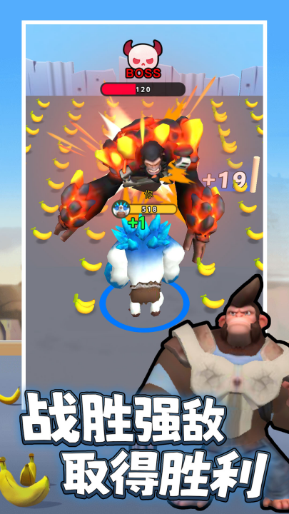 格斗游乐场游戏是一款大猩猩香蕉大作战竞技戏!玩家需要和其它猩猩竞争获取粮食,累积能量进化并击倒挡在路上的敌人。在游戏中你必须时刻提防其他竞争者的突袭,避免被击倒从而损失能量。另外游戏中还有不同的技能,要注意选择。快来体验吧!