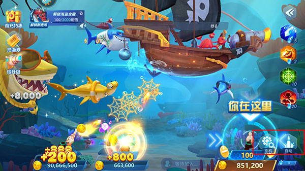 还原经典街机的捕鱼玩法,轻松直升50万炮,一炮亿金爽翻天!