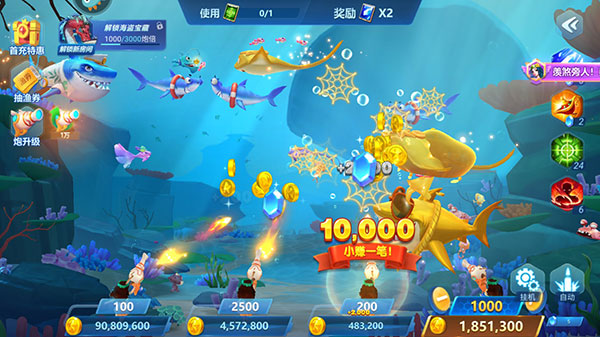 劲爽炫酷炮台和华丽绚烂翅膀,让您在海底的捕鱼世界也能炫出个性,惊艳四座!