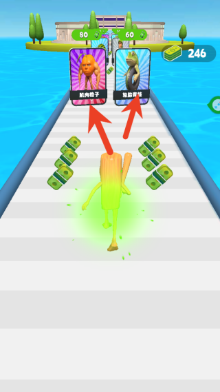 1、创建角色后选择初始山海经异兽(木棍人),通过新手赛道学习基础跑酷操作和道具拾取技巧。